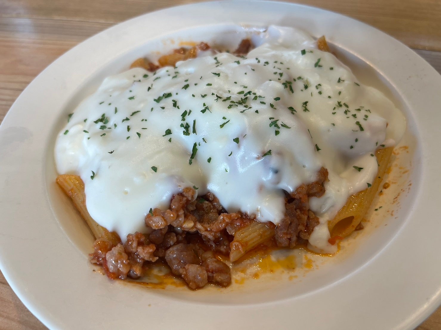 茨城産の豚の粗挽きをふんだんに使用したアラビアータ。オスペンギンおすすめの筑波産「福来みかん入り七味唐辛子」を使用しており、ピリッと辛い一品に仕上がっています。さらに、その上にホワイトソースをかけることでまろやかさもプラス!絶妙なバランスで締めにおススメの一品です。