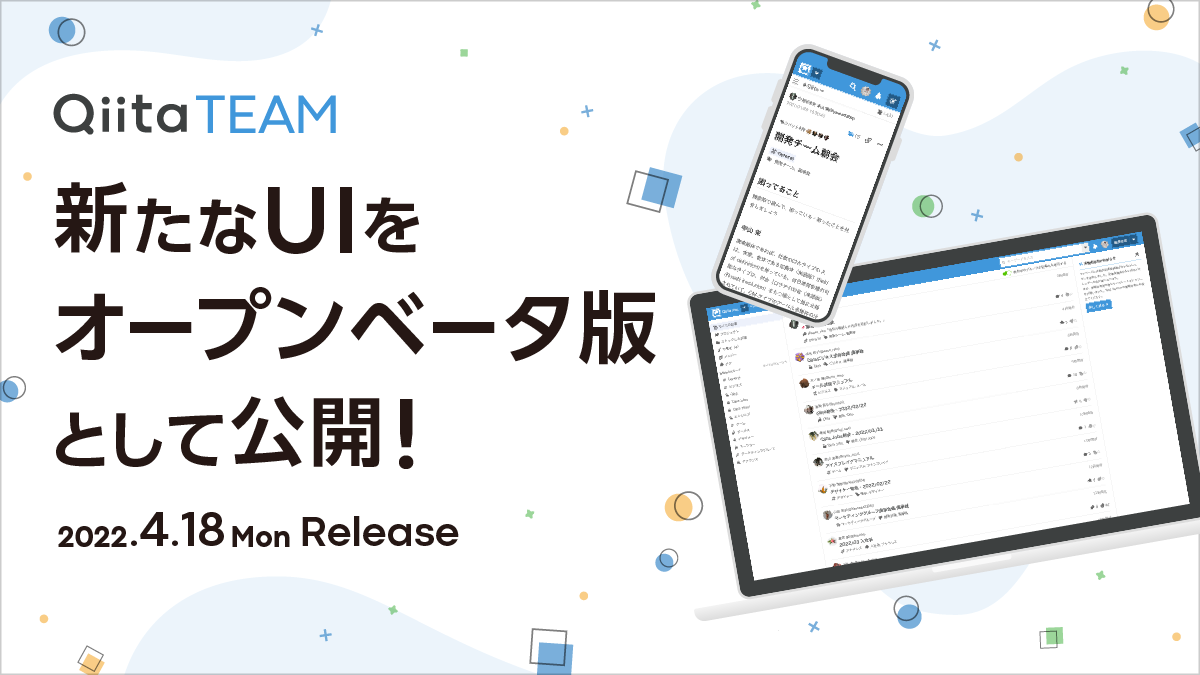 株式会社エイチームのグループ会社であるQiita株式会社(本社:名古屋市中村区、代表取締役社長:柴田健介)は、社内向け情報共有サービス「Qiita Team(キータチーム)」において、新たなUIのオープンベータ版を2022年4月18日(月)より公開しました。