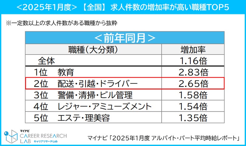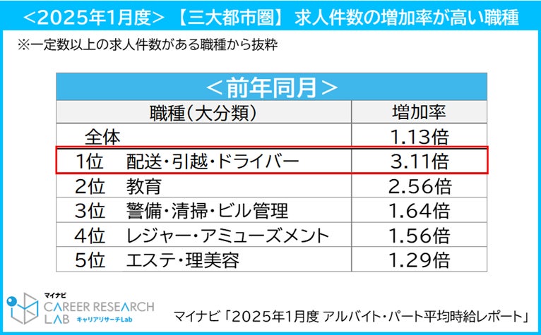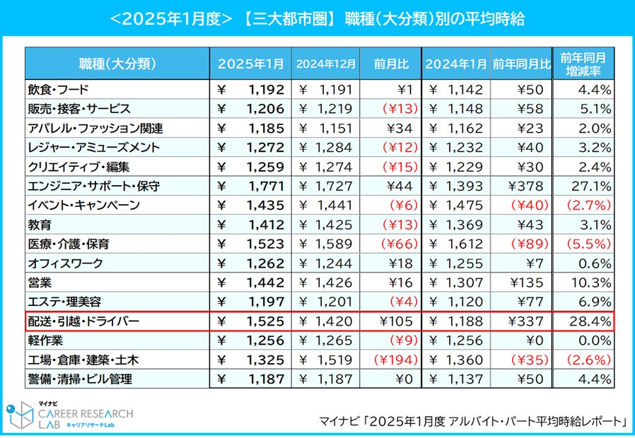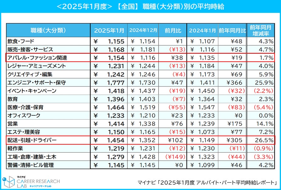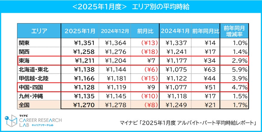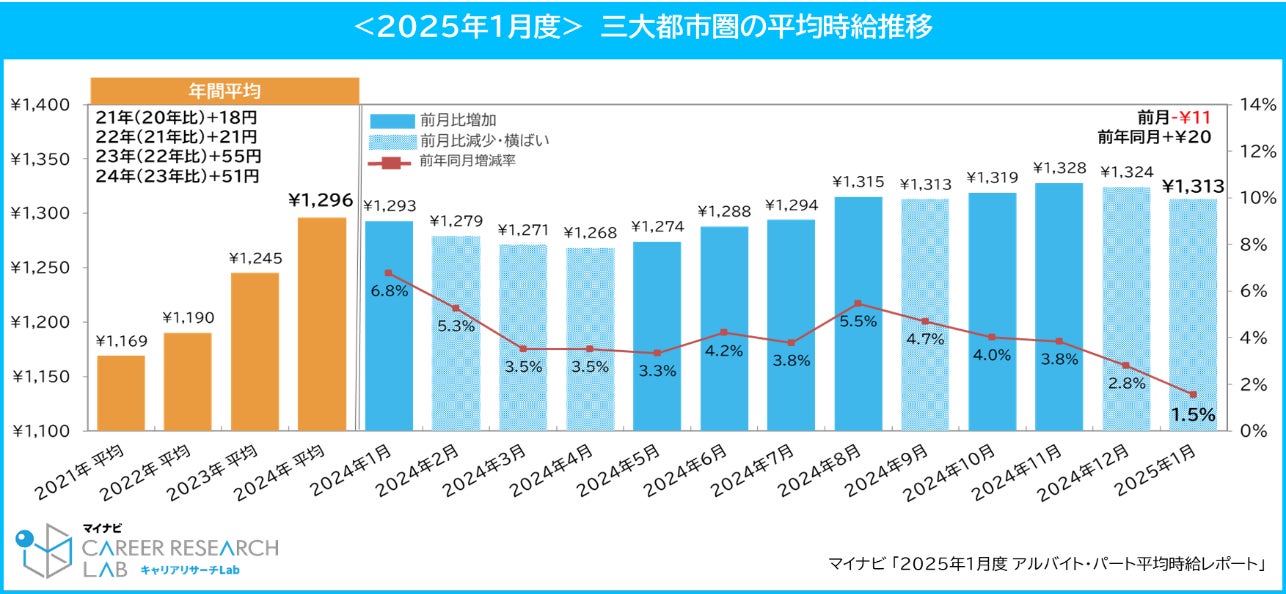 マイナビ、「2025年1月度アルバイト・パート平均時給レポート」を発表