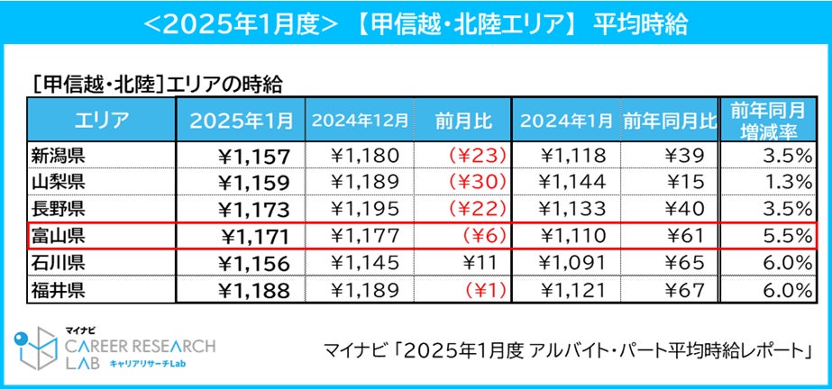 ◆【今月の都道府県TOPIC】米国大手新聞にて「世界の旅行先」の1つに選ばれた、「富山県」に注目。富山県の平均時給は1,171円で、前年同月比61円と大幅増