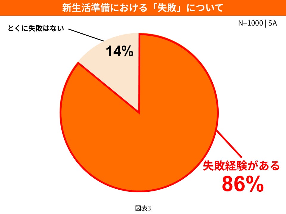 新生活準備を経験した人のうち、「失敗経験がある」と回答した人は86%にのぼりました。【図表3】