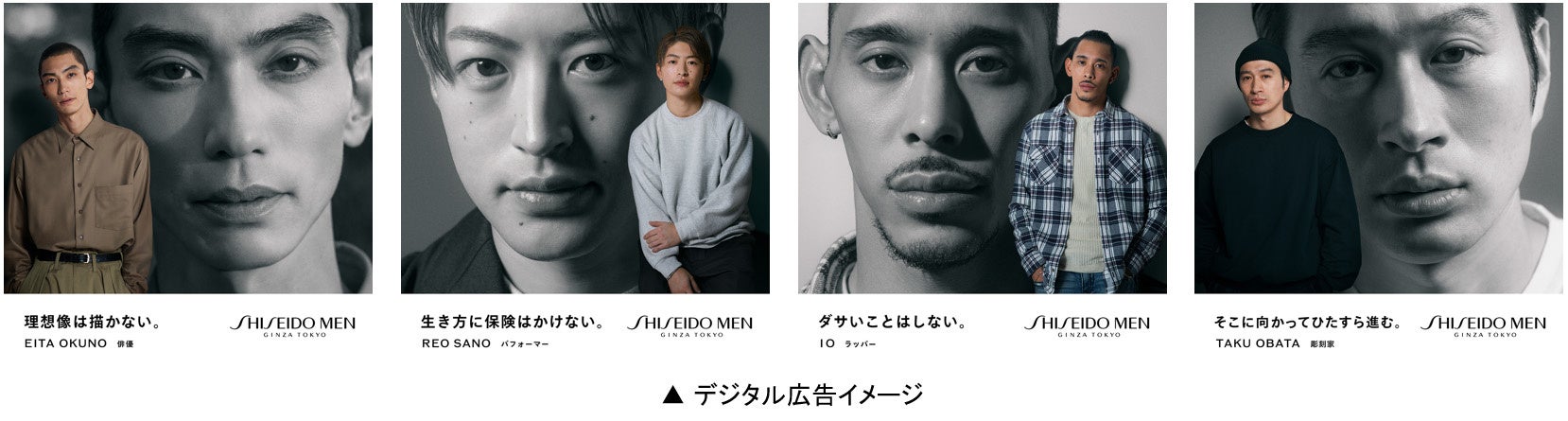 資生堂ジャパンは、「SHISEIDO」のプレステージメンズライン「SHISEIDO MEN」の日本における2022春夏コミュニケーションに、パフォーマーの佐野玲於、俳優の奥野瑛太、ラッパーのIO、彫刻家のTAKU OBATAを起用し、2022年1月24日(月)よりSHISEIDO MEN公式サイトを皮切りに、デジタル広告、JR東日本・新宿駅南口の大判ポスター、東京メトロ・表参道駅の大判ポスターおよびデジタルサイネージにて掲出を順次開始します。
