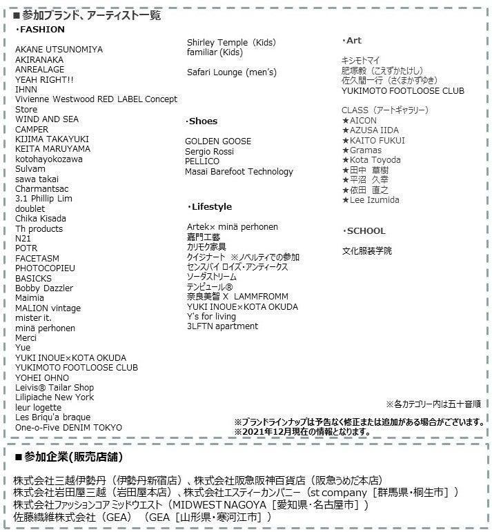 ・3月23日(水) 伊勢丹新宿店、阪急うめだ本店、岩田屋本店、st company(群馬県・桐生市)、MIDWEST NAGOYA(愛知県・名古屋市)、GEA(山形県・寒河江市)にて店舗展開(展開ブランド・商品は店舗により異なります)