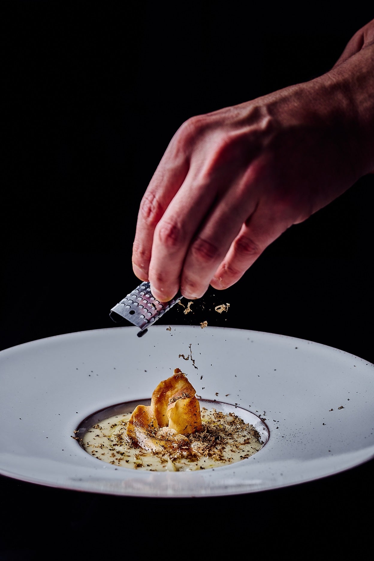 温前菜:菊芋のヴェルタータ 沖縄県産バニラ ウィンタートリュフ