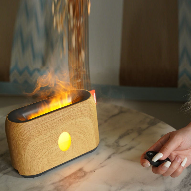 加湿器の水蒸気とLEDライトの灯りを巧みに組み合わせることで、炎が燃えているように演出しています。