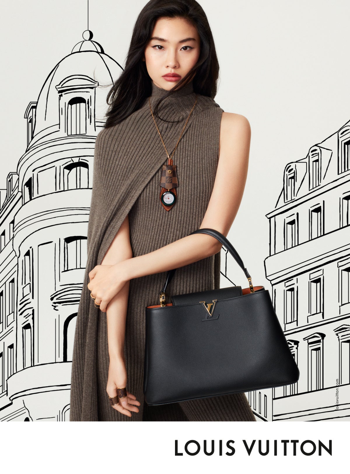 モダンで個性溢れるエレガンスをタイムレスに体現するエマ·ストーンが手にするのは、柔らかな質感と構築的なシルエットを温かみのあるコニャックカラーで表現したアイコニックな「カプシーヌ」。「サイドトランク」を軽やかに持つ姿からは、自由奔放な一面も垣間見えます。一方、トープのグレインレザーとモノグラム·キャンバスの「サイドトランク」と、しなやかな「カプシーヌスープル GM」を際立たせるのは、ホヨン。彼女の印象的な魅力と力強いスタイルが、アイコニックなデザインに新鮮なエネルギーを吹き込みます。