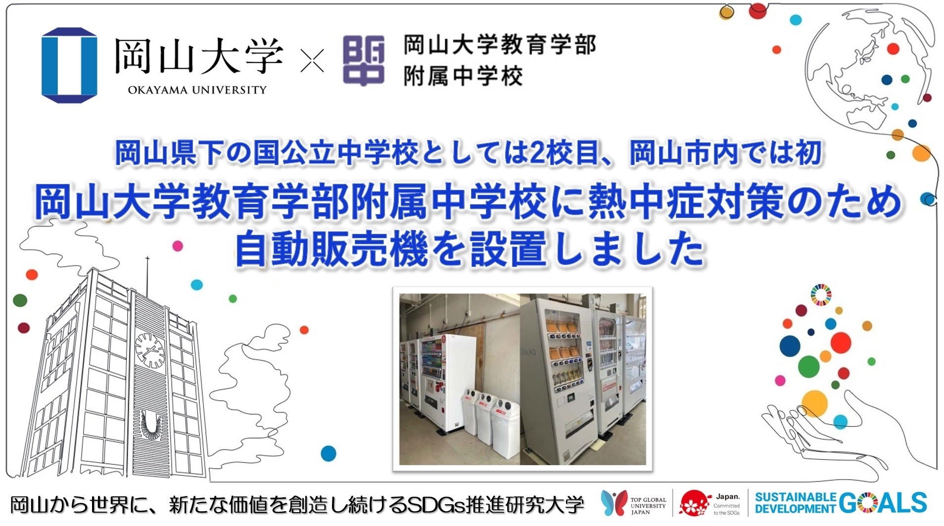 【岡山大学】岡山大学教育学部附属中学校に熱中症対策のため自動販売機を設置しました~岡山県下の国公立中学校としては2校目、岡山市内では初~