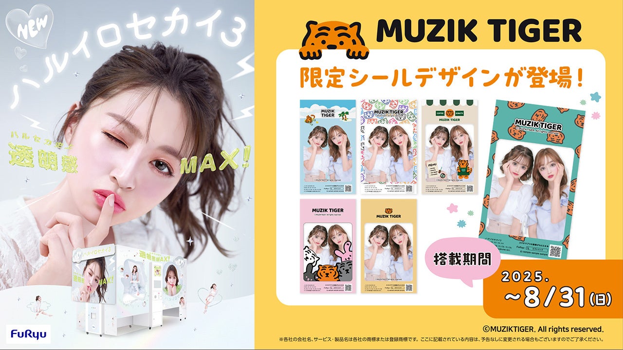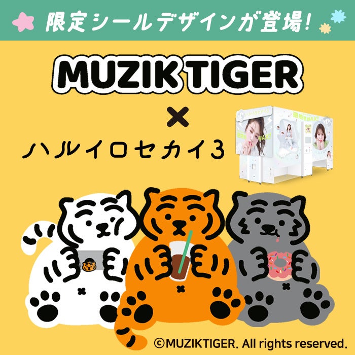 『ハルイロセカイ』シリーズは、選べる2つの写りコースと、透明感あふれる写り・シールが特徴で、2022年の発売当初から幅広い世代に愛され続けているプリ機です。この度発売する『ハルイロセカイ3』では、この『ハルイロセカイ』シリーズの魅力である写りとシールの“透明感”にとことんこだわりました。さらに、今の『ハルイロセカイ2』好きはもちろん、初代の『ハルイロセカイ』好きの好みにも応えられる、歴代シリーズのパーツバランス再現機能も新搭載。SNSで話題沸騰中の韓国発“トラ”のキャラクター「MUZIK TIGER(ムジークタイガー)」をあしらったシールデザインも期間限定で搭載します。初代から最新まで様々な“ハルセカ”ファンを虜にする最終バージョンアップにご期待ください。