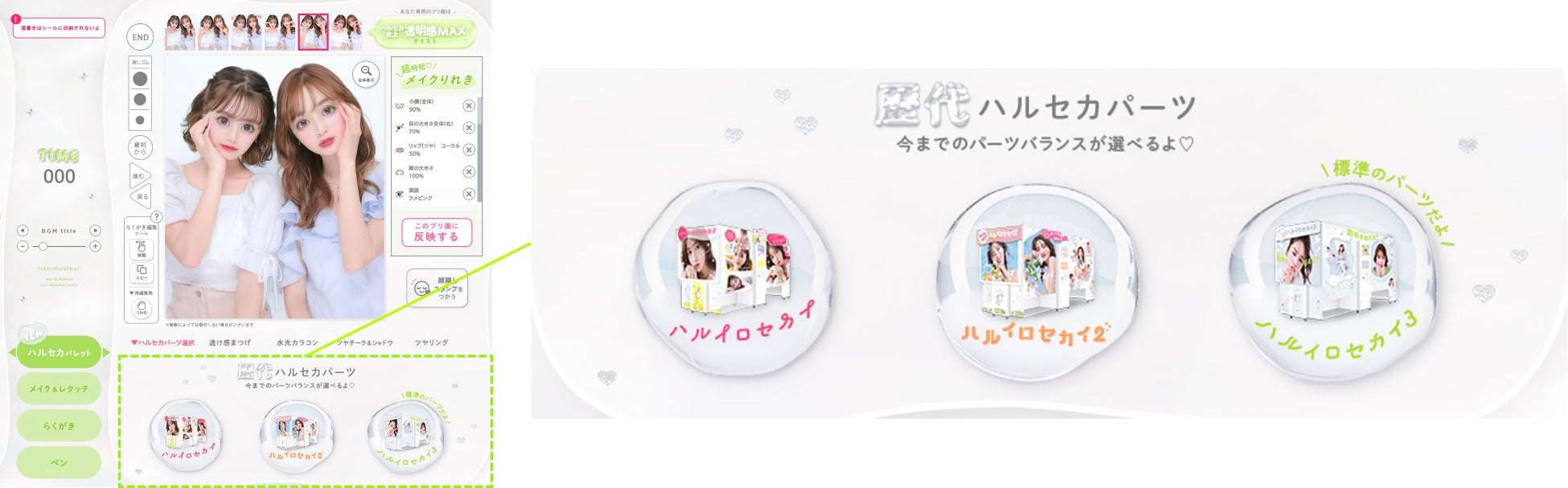 写りテイストは落書き時に選択が可能で、撮影した全てのプリを見ながら落ち着いてお選びいただけます。落書き画面で自身のプリを確認しながらお好みの写りを選択したり、その日の気分に合わせて選択したりすることが可能です。これまで通りの仕上がりをお楽しみいただいてもよし、透明感がアップした新しい写りに挑戦してもよし、“ハルセカ”ファンを虜にするシリーズの集大成に是非ご期待ください。