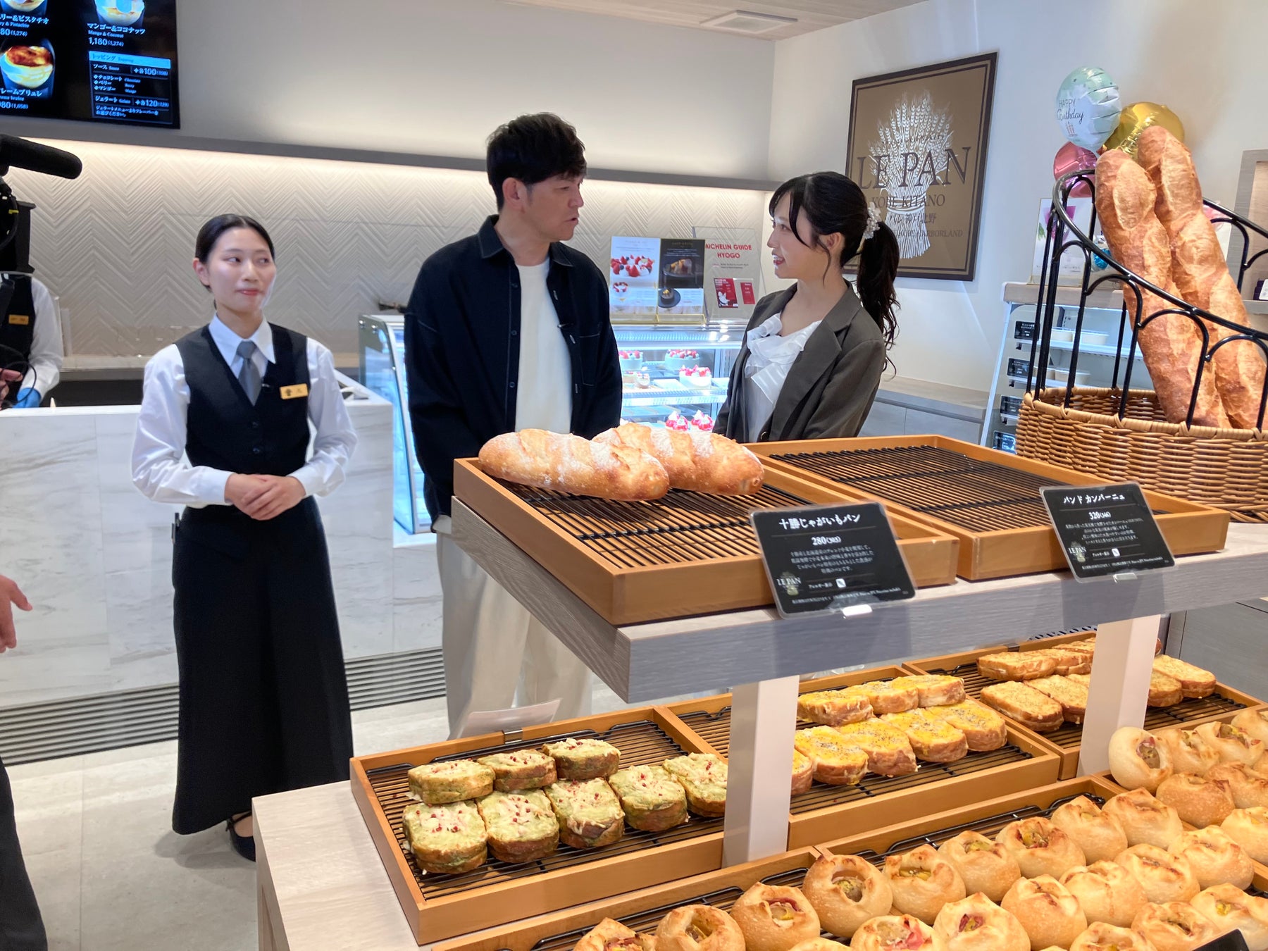 1階にある神戸で大人気のベーカリー「ル・パン総本店」で、二人は一番人気の塩パンとジェラートを注文。ここでは注文した商品を天然温泉の足湯につかりながら食べることが出来ます。新感覚のパン×足湯の感想は…?