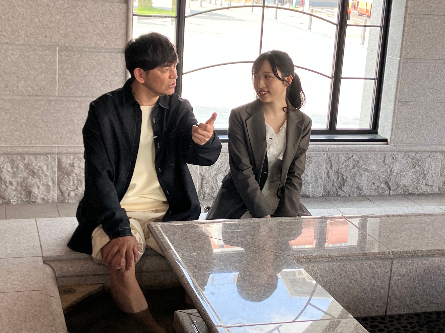 最後の新スポットは・・・今年3月にオープンした「ラスイート ルパンビル」。地元・神戸で愛されるホテル「ラ・スイート」が手掛けた複合ビルの美しさに「海外みたい」と2人が口を揃え、岡田は思わずSNS用に「イケオジ」写真を撮影!