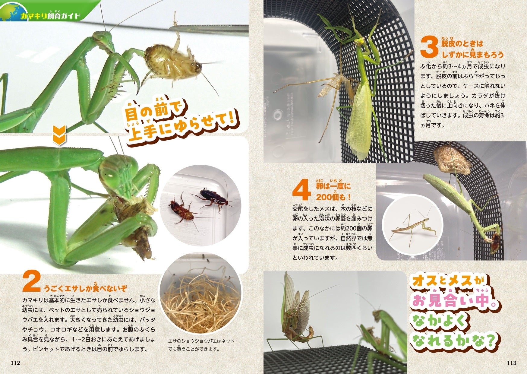 さらに、リオック、コロギス、カマキリ、ヘラクレスオオカブトといったほかの図鑑ではなかなか知ることのできない昆虫の飼育方法も丁寧に解説します。