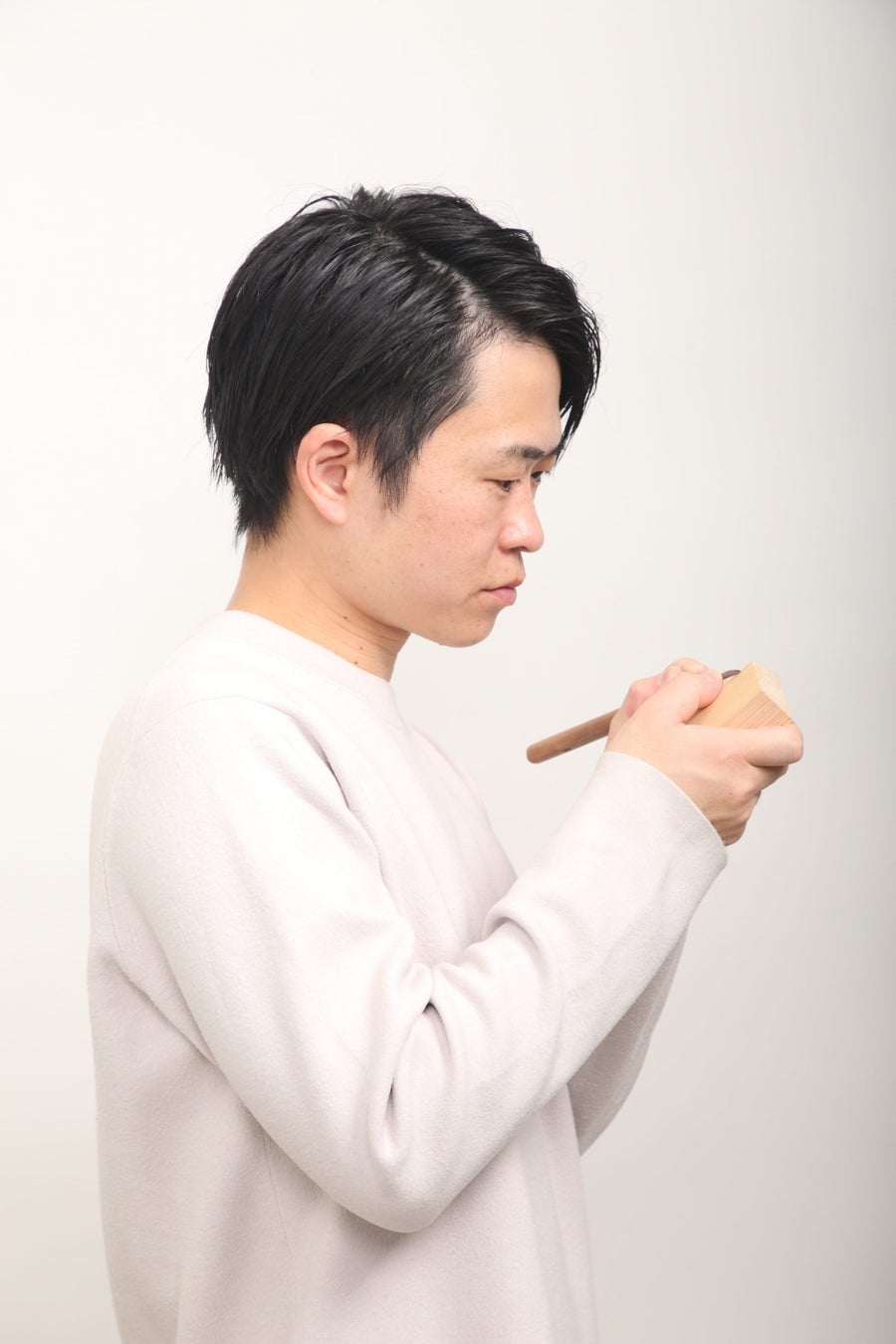 1988年生まれ。2021年に趣味で木彫りを始め、「あっと驚くもの」をテーマに身近な食べ物や生活雑貨を木彫りで再現。つい誰かに話したくなるような❝コミュニケーションツール❞となる作品を心がけ、全国各地で展覧会やワークショップ、講演会などのイベントを開催。今作は初めての自作絵本。
