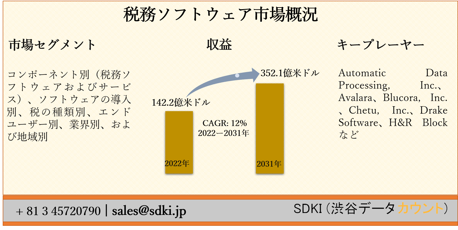 SDKI Inc.が「税務ソフトウェア市場ーグローバルな予測2022ー2031年」の新調査レポートを2022年03月14日に発刊しました。レポートは、業界の新ビジネスチャンスとともに、市場とその成長見通しの完全な評価を提供します。さらに、2022ー2031年の予測期間中の市場規模と年間成長率が含まれています。