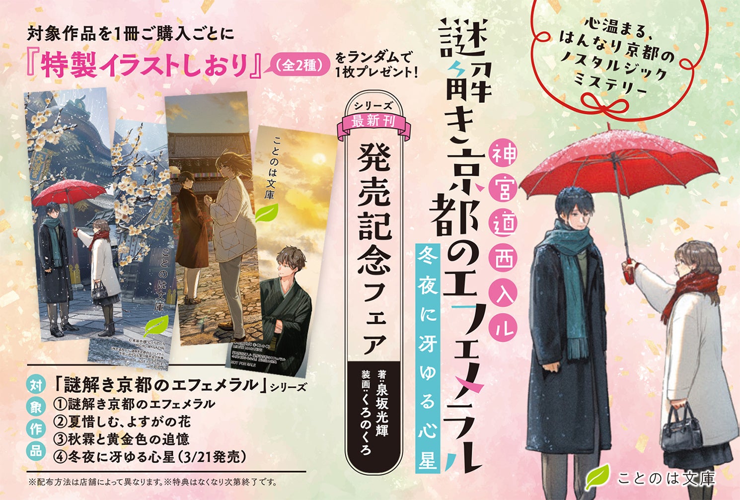 文芸評論家・三宅香帆さん推薦!人同士のご縁や想いをドラマチックに描くはんなり京都ミステリー「神宮道西入ル 謎解き京都のエフェメラル」最新刊『冬夜に冴ゆる心星』3月21日発売!一部書店でフェア開催。