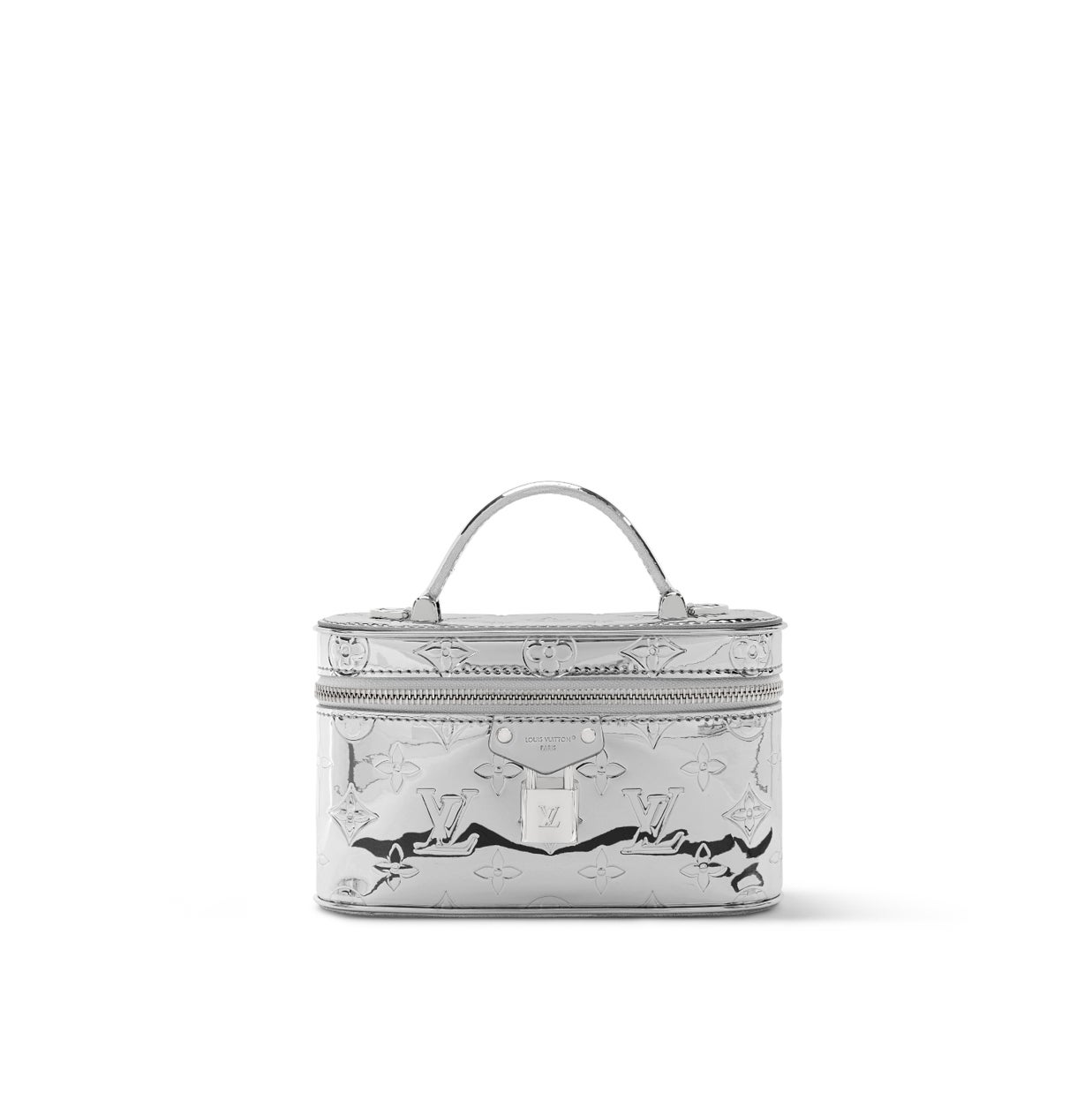 ルイ·ヴィトンの伝統的なヴァニティケースから着想を得た「ヴァニティ·チェーン ポーチ」。メゾンの旅の真髄(こころ)が息づく一品です。シックなシルバーカラーのモノグラム·ミラー キャンバスを使用し、メゾンを象徴するLV ロゴの刻印入りパドロック(錠前)を同系色であしらいました。取外し可能なストラップとチェーンを備え、小ぶりのコインパースやサングラスなどの必需品をすっきりと収納できる機能的なデザイン。