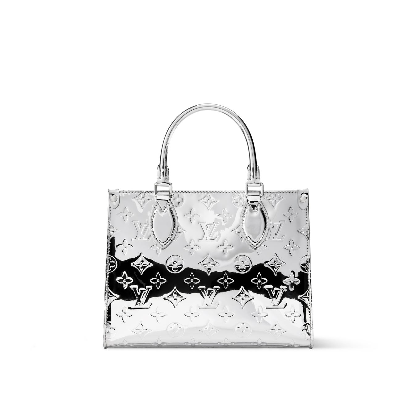 たっぷりとしたサイズに仕上げた「オンザゴー PM」。ラミネート加工を施したキャンバスを使用することで耐久性を高めつつ、光を受けて輝くシルバーカラーと調和するメタルパーツをあしらいました。内装には複数のポケットを備え、毎日の必需品はもちろん、小さな本まで収納できる多用途なデザイン。
