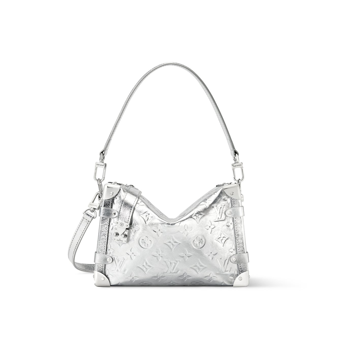 アフタースキーにふさわしいエレガントな「サイドトランク MM」。フューチャリスティックな印象を演出する、大胆なシルバーカラーのレザーを使用し、ルイ·ヴィトンを象徴する同系色のSロックスタイルの留め具をあしらいました。メゾンのラゲージ製造の伝統を想起させるメタルコーナーをはじめとする、オリジナルデザインを継承したディテールが魅力です。冬のお出かけや都会的なパーティにも、デイタイムからイブニングシーンまでエフォートレスに活躍するバッグ。