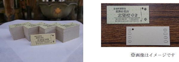 能勢妙見山「開運殿」で開運合格祈祷をした「合格祈願硬券・志望校ゆき」を配付します。