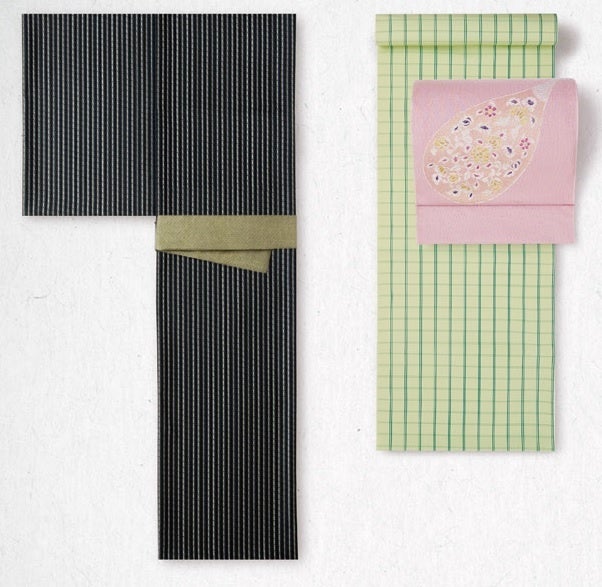 右:西陣御召(お誂え・お仕立付) 165,000円(税込み) 西陣なごや帯(帯芯・お仕立付) 110,000円(税込み)