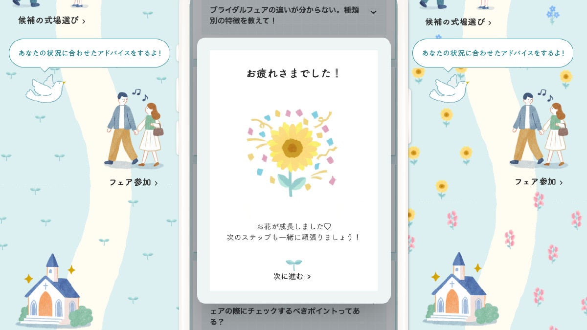 結婚式準備における悩みは、フェーズごとに異なります。新コンテンツでは、お客様が自分の準備フェーズに合った悩みに気づき、悩みを解決することで次のステップへ進むことをサポートします。