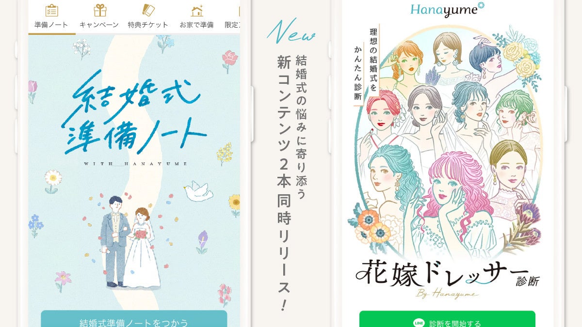 カップルの結婚式準備をサポートする「結婚式準備ノート」「花嫁ドレッサー診断」をリリース!結婚式の悩みに寄り添う新コンテンツが「ハナユメ」に登場!