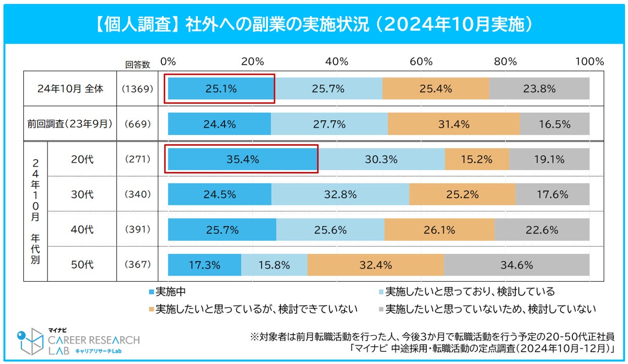 ◆転職を考える20代正社員の3人に1人以上が「副業を実施中」