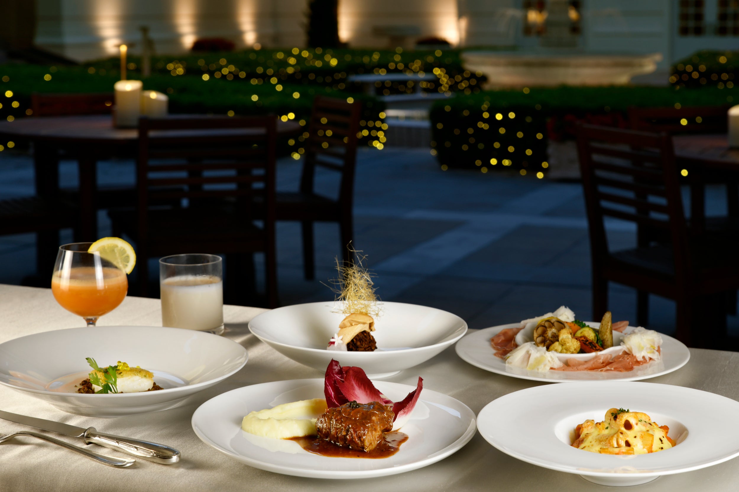 贅沢な香りと旨味が魅力のロディジャーノチーズを使用した前菜にはじまり、あたたかなグラタン仕立てにしたパスタ料理、メインディッシュには黒胡椒と赤ワインでじっくり煮込んだ柔らかな肉の旨味と濃厚な味わいが魅力のトスカーナの郷土料理“ペボーゾ”のほか、飴細工で彩る“光”をテーマにしたドルチェをお召し上がりいただけます。