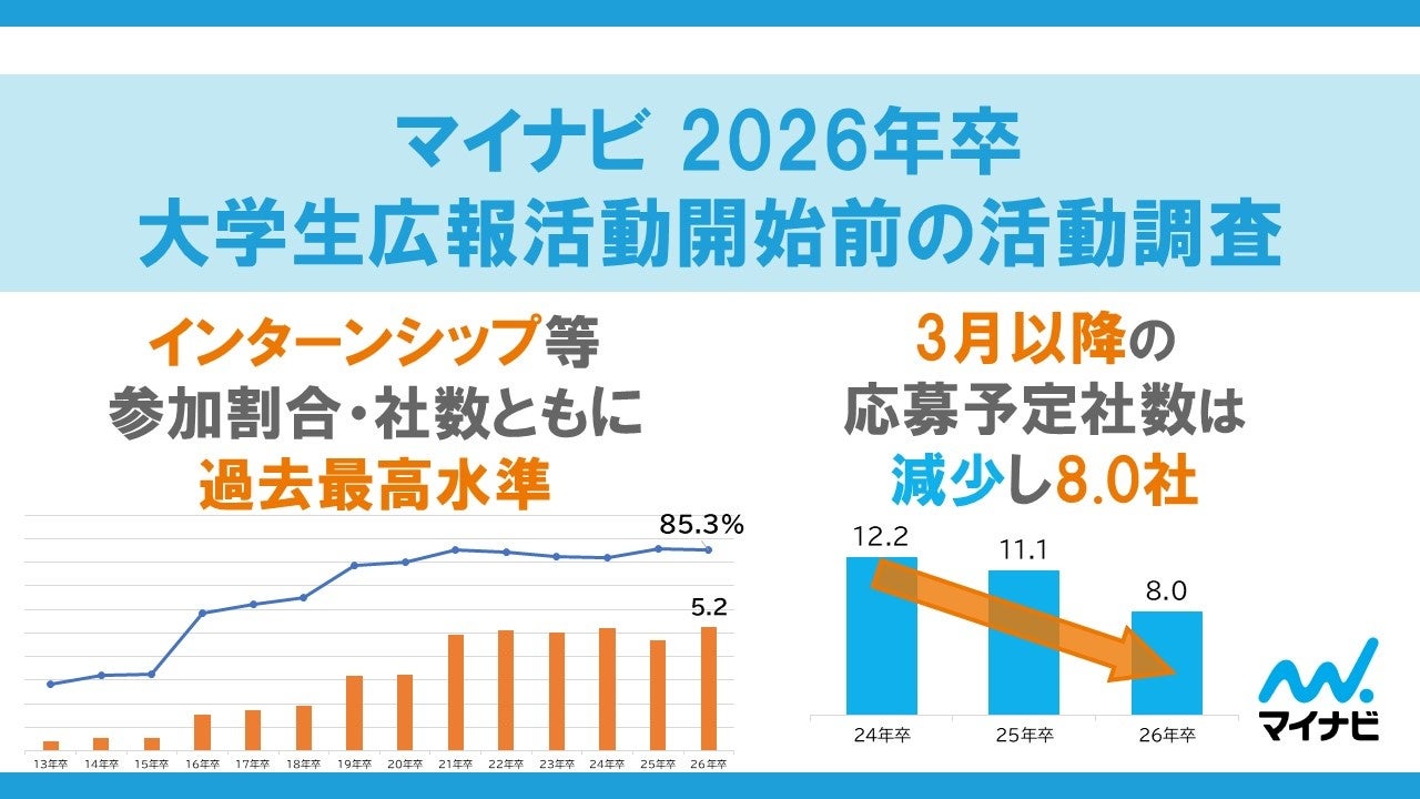 株式会社マイナビ(本社:東京都千代田区、代表取締役 社長執行役員:土屋芳明)は、2026年卒業予定の全国の大学生・大学院生を対象に実施した、「マイナビ 2026年卒 大学生広報活動開始前の活動調査」の結果を発表しました。