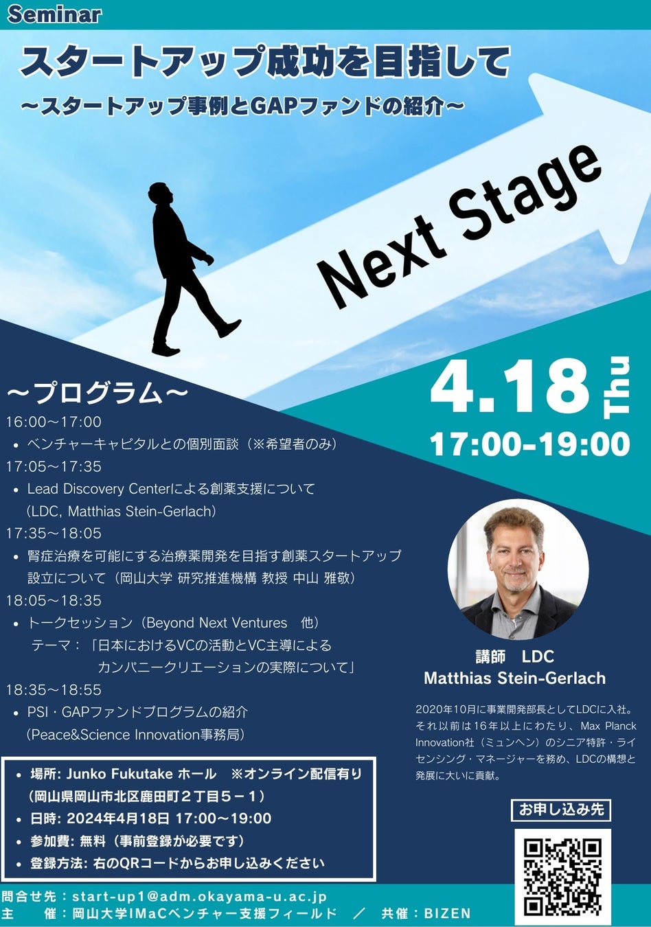 【岡山大学】スタートアップ成功を目指して ~スタートアップ事例とGAPファンドの紹介~〔4/18,木 ハイブリッド開催〕
