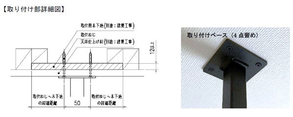 備考:取付時の木下地及び天井仕上げ材は別途建築工事が必要となります