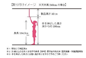 一般的な天井高240cmである場合、床から約190cmの位置に取り付ける高さ設計(※3)により、女性の平均身長でも無理なく洗濯物を干すことができます。