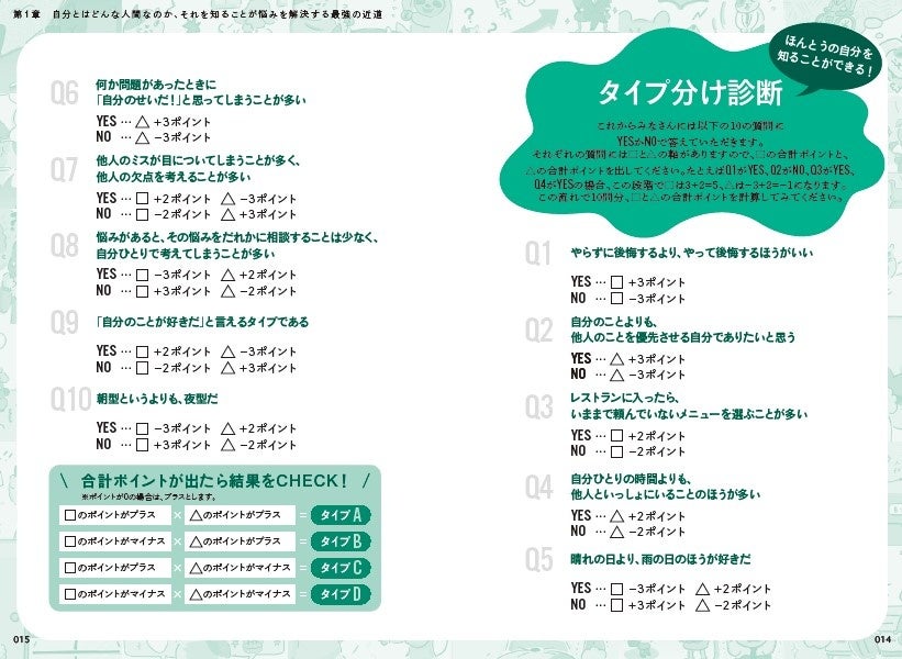 本書ではタイプ分け診断を設け、ご自身の思考タイプを分析できるようになっています。
