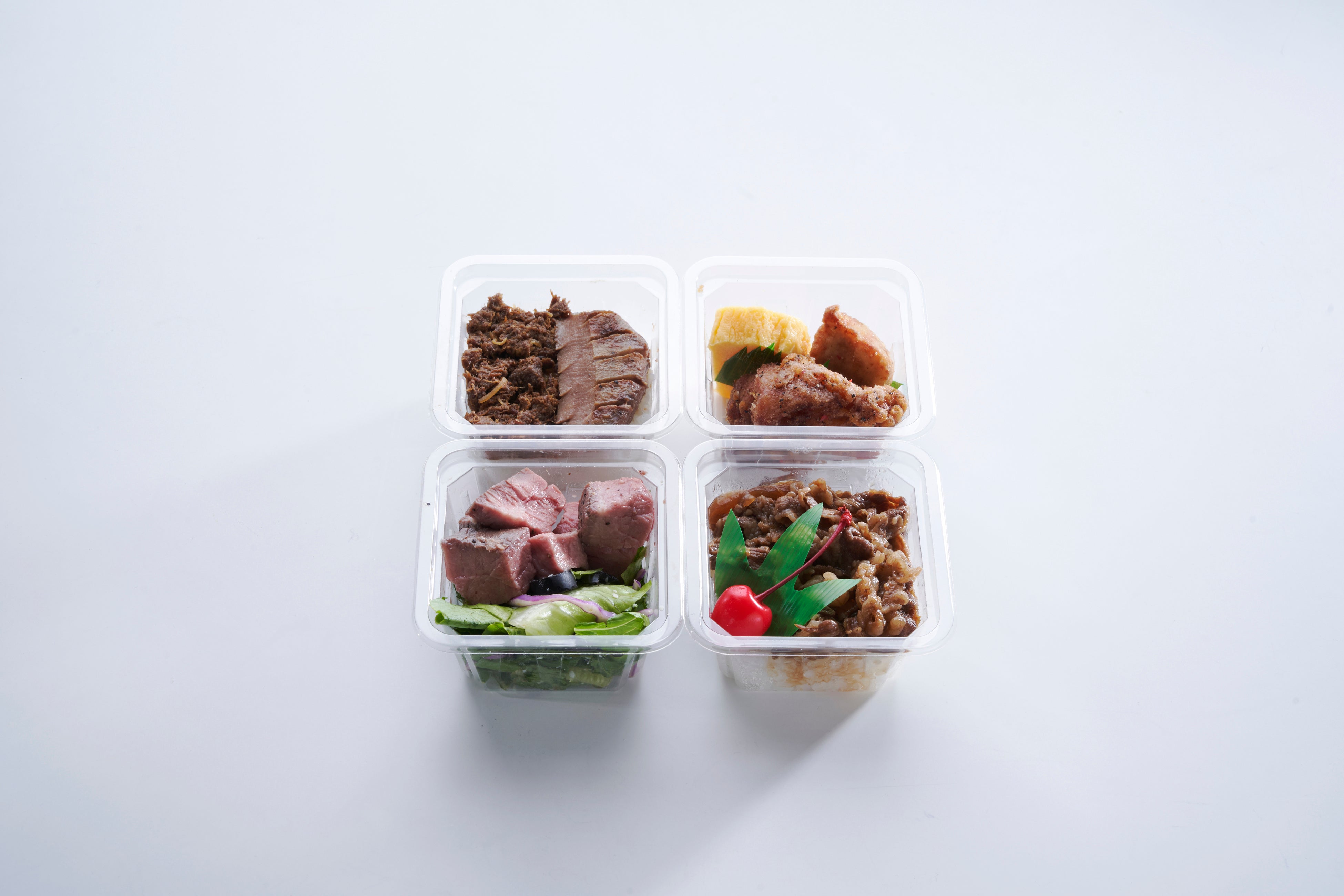〈牛たん かねざき〉は厚切り牛たんと牛たんそぼろのミニ丼、〈からっ鳥〉はWペッパーとムネ(塩)唐揚げ、〈味の梅ばち〉はミニすき焼丼、〈ポールボキューズ デリ〉はローストビーフ~パヴェ仕立てを、それぞれミニサイズにし、1つの折に詰め合わせました。