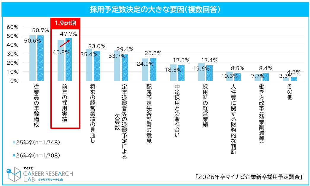 採用予定数決定の大きな要因として「前年の採用実績」が前年よりも増加