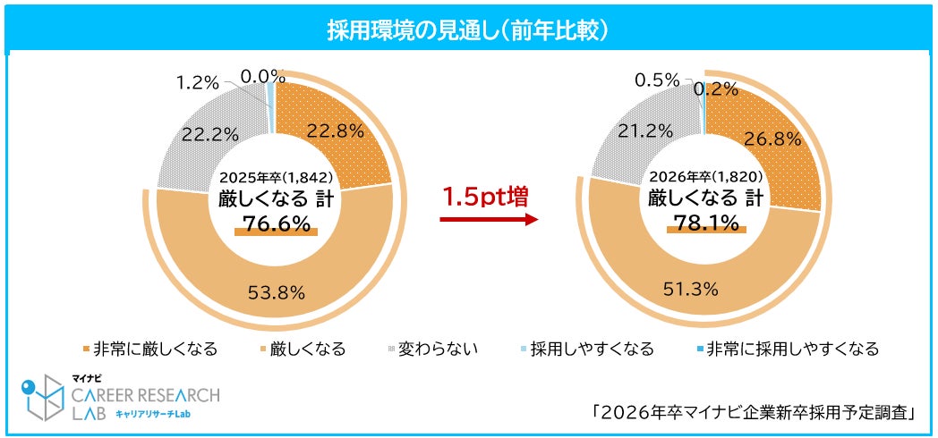 78.1%の企業が26年卒の新卒採用について「厳しくなる」見通しと回答