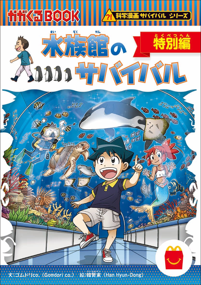 2025年3月21日(金)より期間限定で、『水族館のサバイバル』を特別編集した「水族館のサバイバル 特別編」が、全国のマクドナルド(一部店舗を除く)で販売されます。さらにハッピーセット「水族館のサバイバル 特別編」を書店に持参し、「科学漫画サバイバル」シリーズを購入するとオリジナルの「サバイバルひみつのライトペン」がもらえる書店キャンペーンも実施いたします。