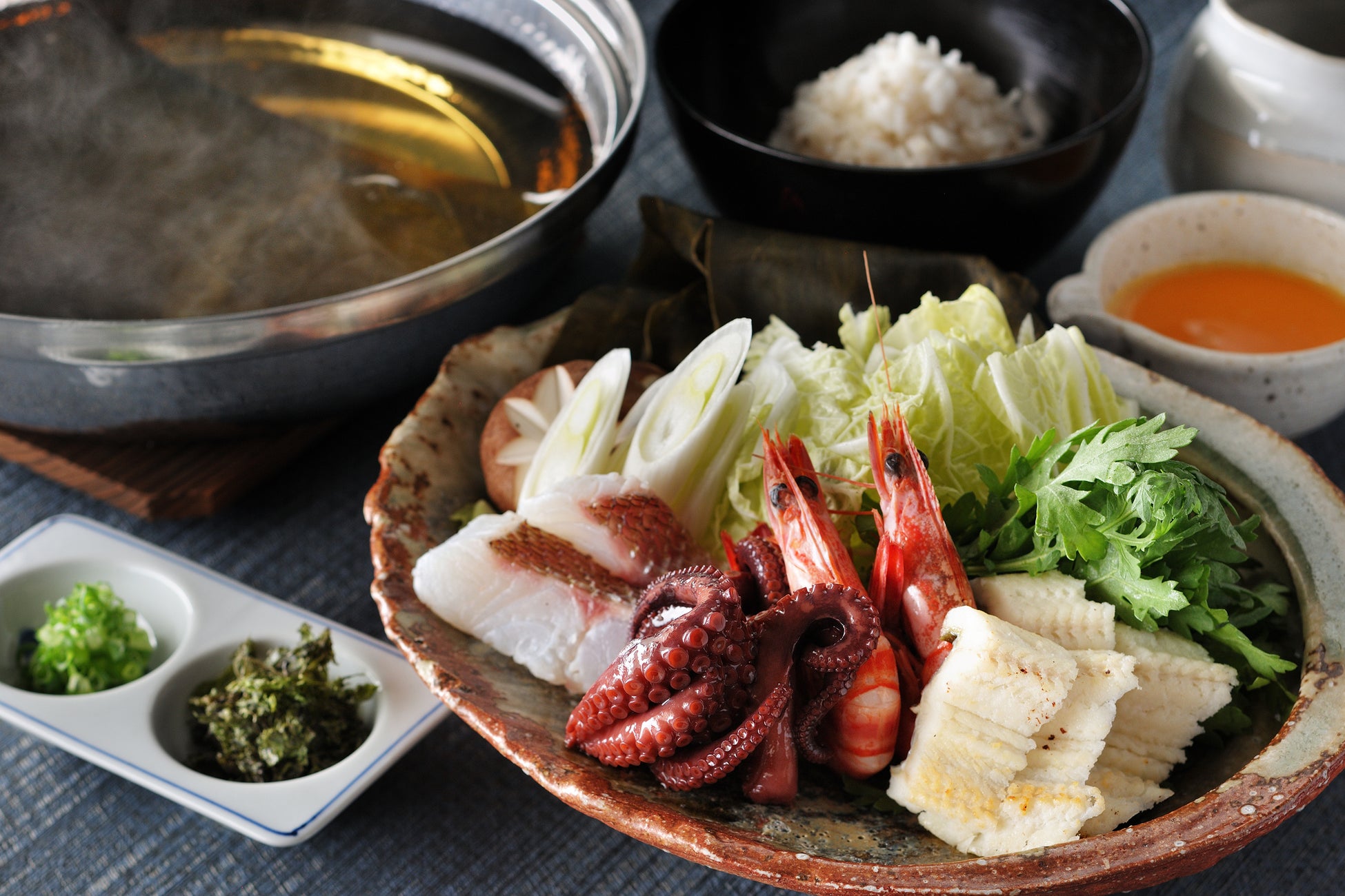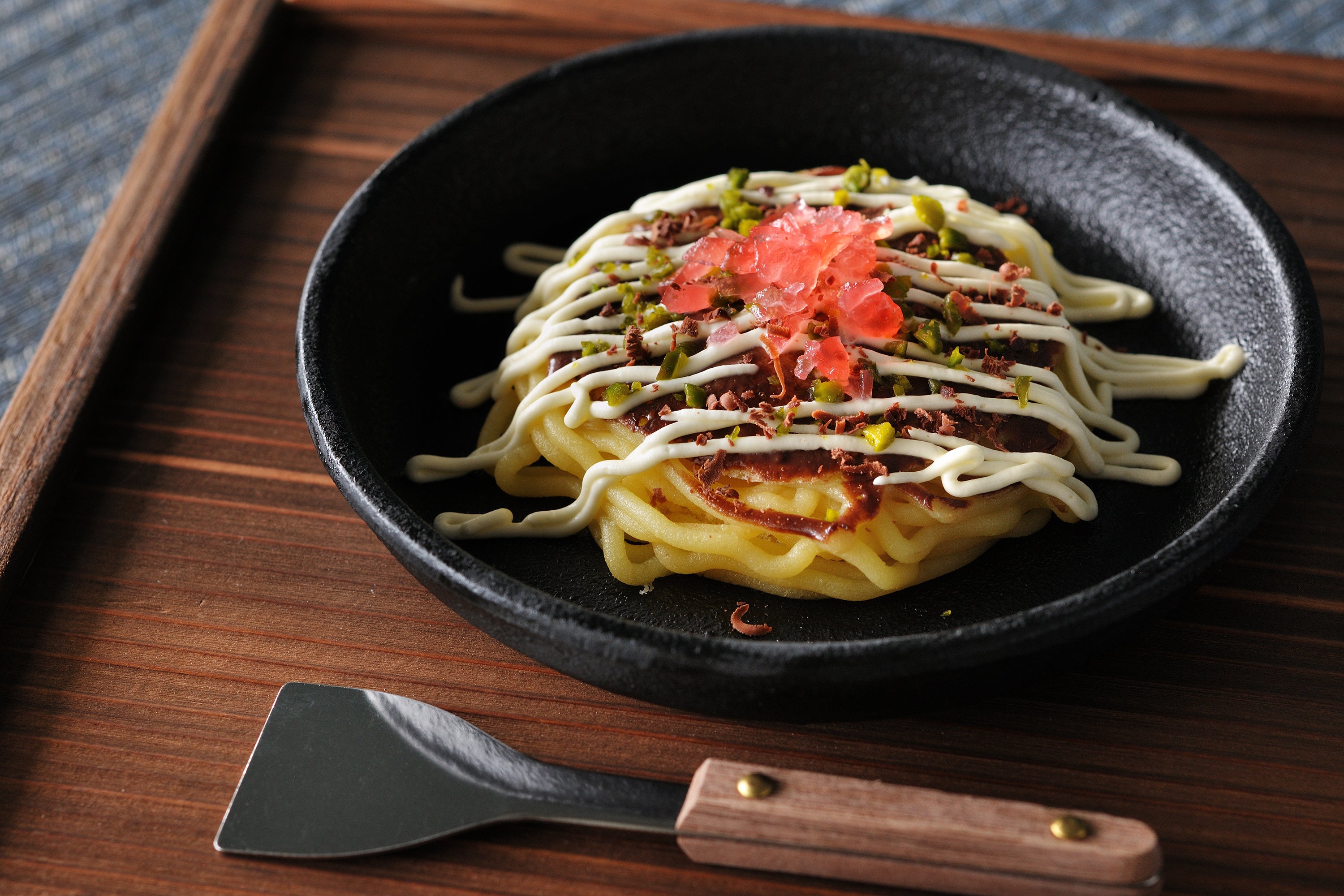広島が誇るレモンや牡蠣、お好み焼きなどの食文化を、「トロンブルイユ(*1)」の技法で表現した遊び心あふれる会席「安芸の海遊(かいゆう)会席」を提供します。夕食の幕開けは、デザートに見立てたレモンと海老ムースをあわせたキッシュ「タルトシトロン」です。メインの台の物には、村上水軍(*2)ゆかりの縁起物「水軍鍋」を提供します。「八方の敵を喰らう」とされる縁起物のタコや近海で獲れた、わかめ、昆布などの海藻、鯛、穴子などの海の幸を贅沢に盛り込みました。会席の締めくくりは、広島のソウルフード「お好み焼き」に見立てたモンブラン。最初から最後まで驚きが続く、見立ての技を凝らした驚きのひとときを体験できます。