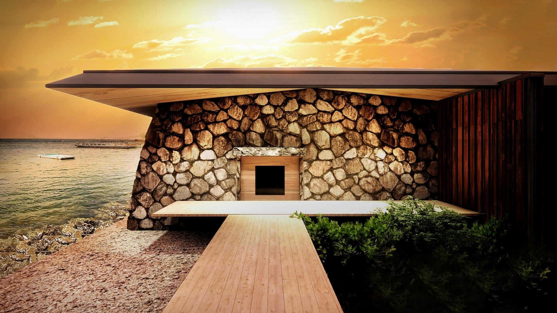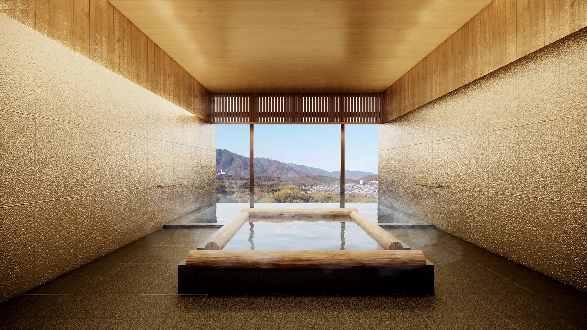 宿の最上階の大浴場には、瀬戸内の海と山、それぞれの情景に浸る2つの湯殿を用意します。南側に面した露天風呂は、瀬戸内海と湯船が溶け合うようなインフィニティ。まるで穏やかな海そのものに身を委ねているかのような、開放感あふれるひとときを堪能できます。一方、北側の山並みを望む内風呂には、体の芯から温まる「あつ湯」と、じっくりと癒やされる「ぬる湯」の2種類を設けています。さらに、敷地内で最も海に面した地に、瀬戸内地域で古くから親しまれてきた「石風呂」を現代に継承した古代サウナも併設します。鎌倉時代に起源を持ち、かつてこの地の暮らしに根付いていた石風呂は、今では目にする機会がほとんどありません。現存する遺構の調査や文献をもとに、現代のくつろぎを追求して甦らせたこの空間を通じて、瀬戸内が育んできた奥深い温泉文化を体験できます。