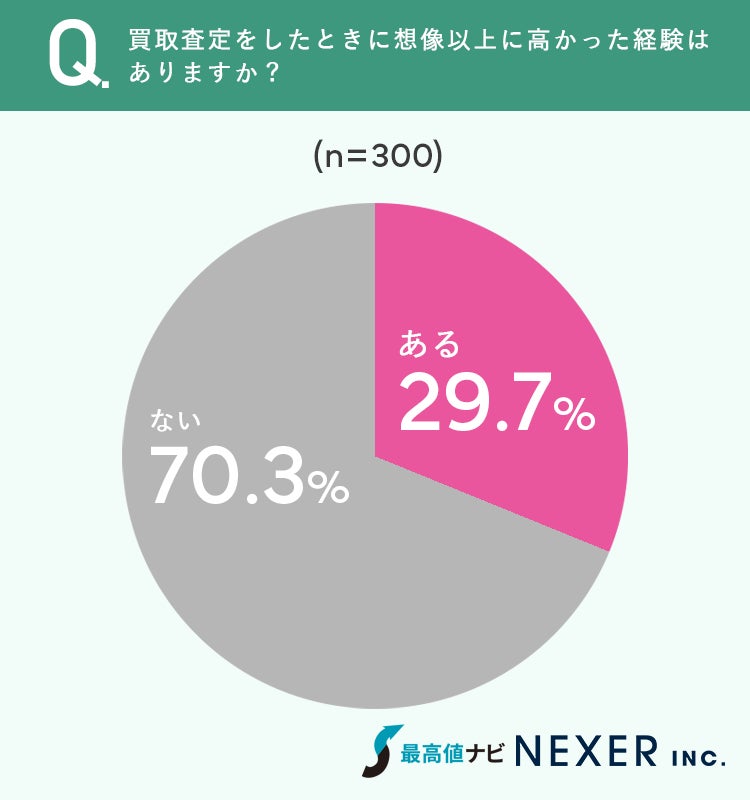 買取査定で「想像以上に高かった」と感じた人は29.7%と約3割にのぼりました。