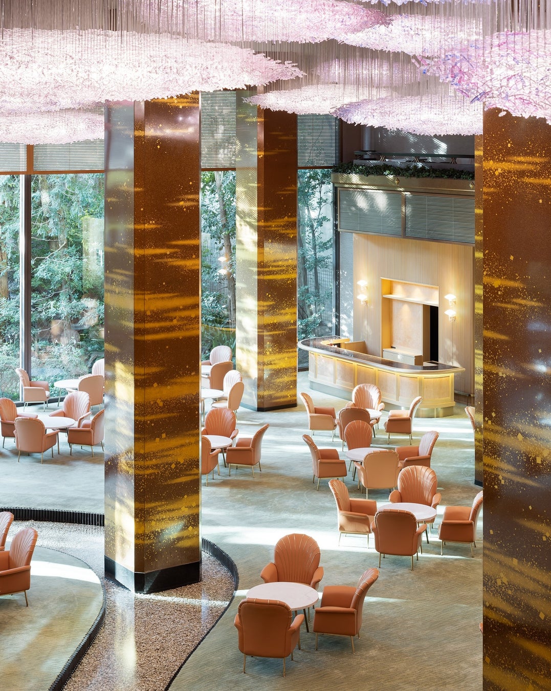 メインラウンジは、紫雲をイメージしたシャンデリアや、水の回廊が流れる非日常空間。目の前に広がる日本庭園が、都会の喧騒を忘れさせます。また、ホテルから美術館へは徒歩約10分と好立地。展覧会とともにアートを五感で堪能する、“芸術の秋”にふさわしいひとときをお過ごしください。