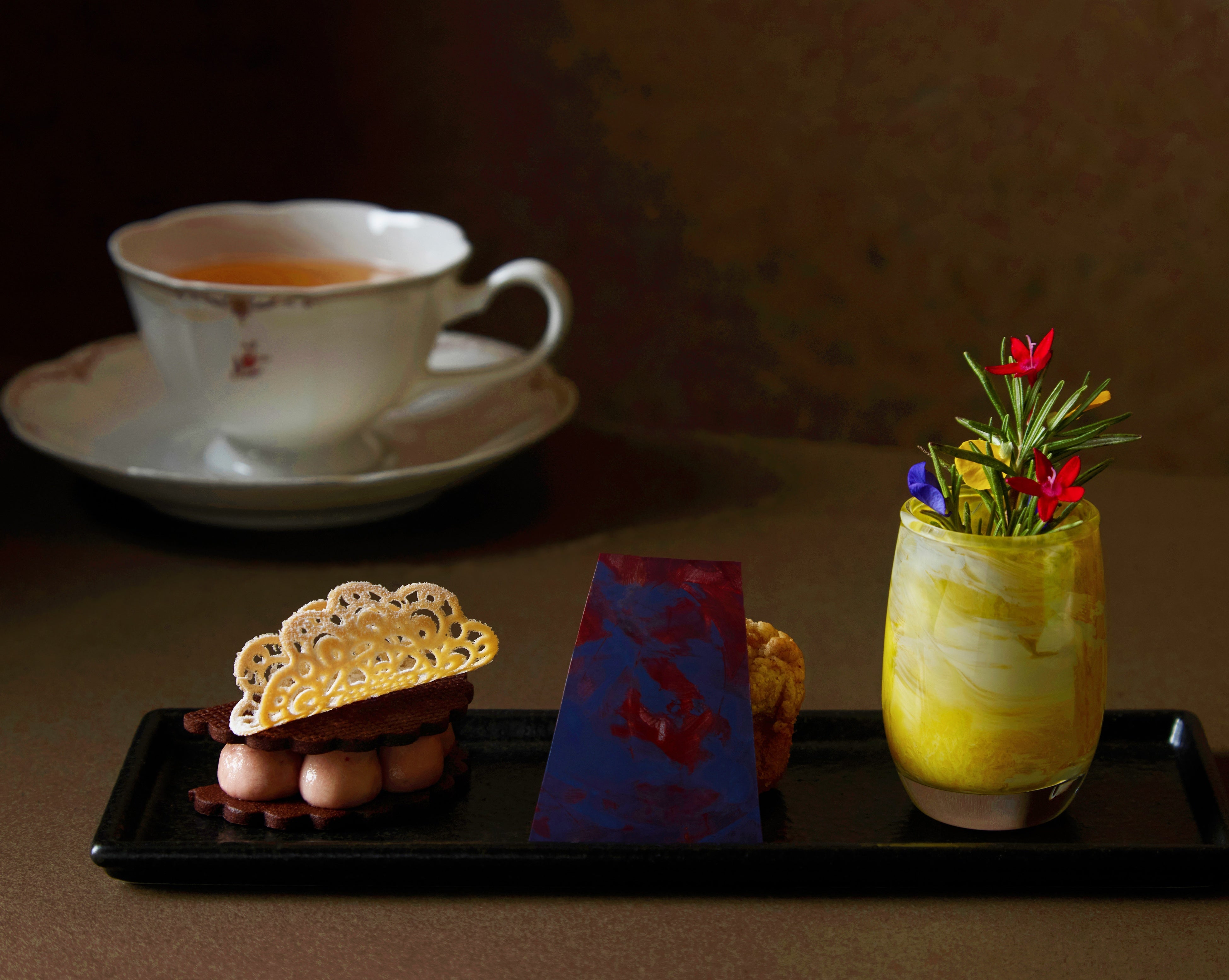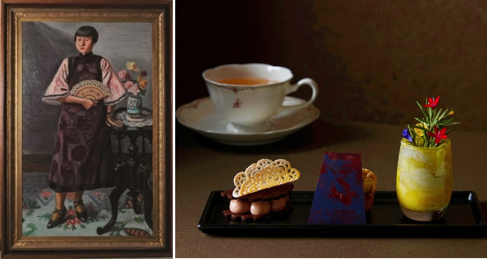 大阪出身で近代日本を代表する洋画家の一人、小出楢󠄀重氏の約25年ぶりとなる本格的な回顧展「小出楢󠄀重 新しき油絵」の開催に併せ、通常はリーガロイヤルホテル大阪のメインラウンジに展示している作品《周秋蘭立像(しゅうしゅうらんりつぞう)》が美術館に出展されることを受け、メインラウンジではその作品の世界観をスイーツで表現したティーセットをご用意いたします。作品に描かれた扇子や花瓶の花、チャイナドレスをモチーフにしたスイーツ3種とともに、期間限定のジャスミンティーが登場。作品の世界観に浸る優雅な時間をお楽しみいただけます。