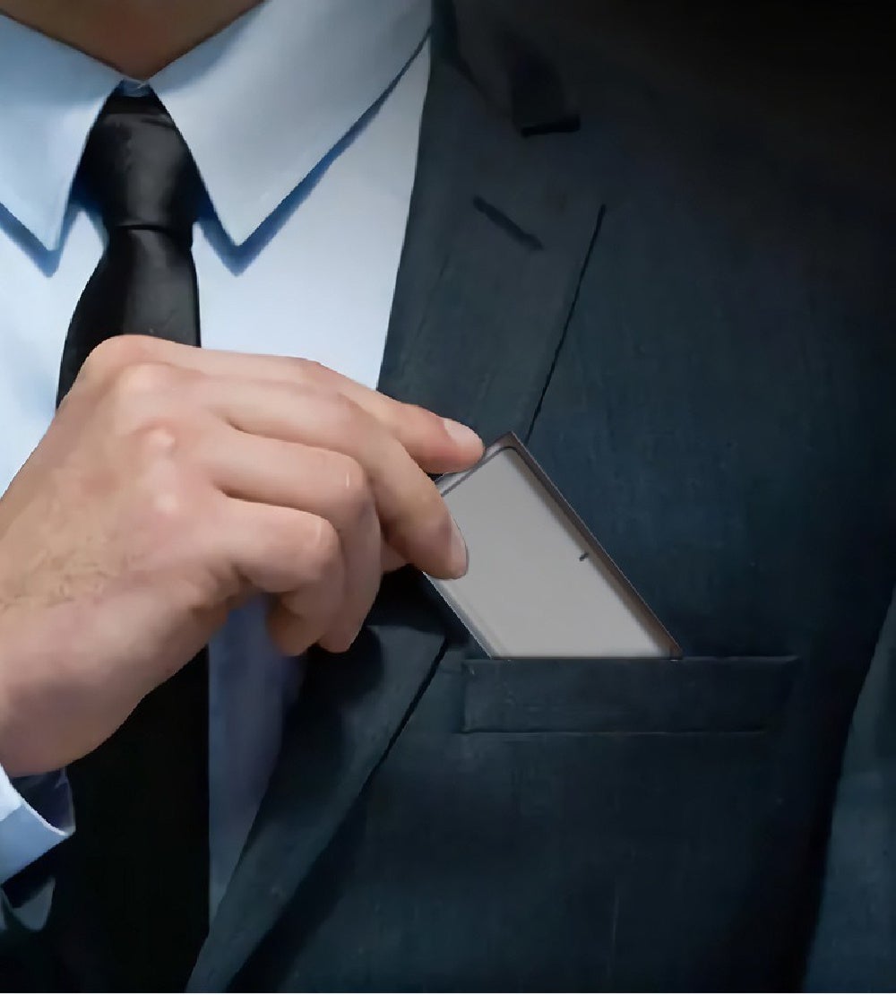スーツの胸ポケットなどにも入るサイズで、カードケースよりもコンパクトなスリム形状。