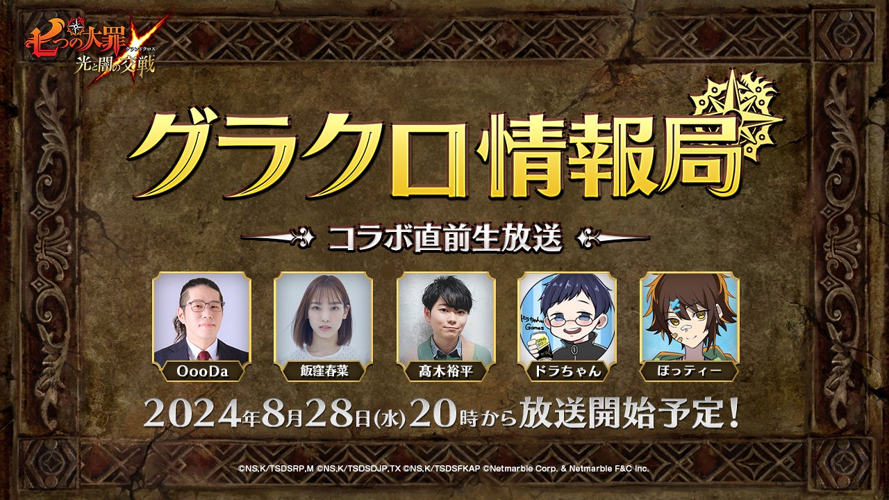 『七つの大罪 ~光と闇の交戦~』第59回グラクロ情報局~コラボ直前生放送~8月29日実施のイベント情報を初公開!
