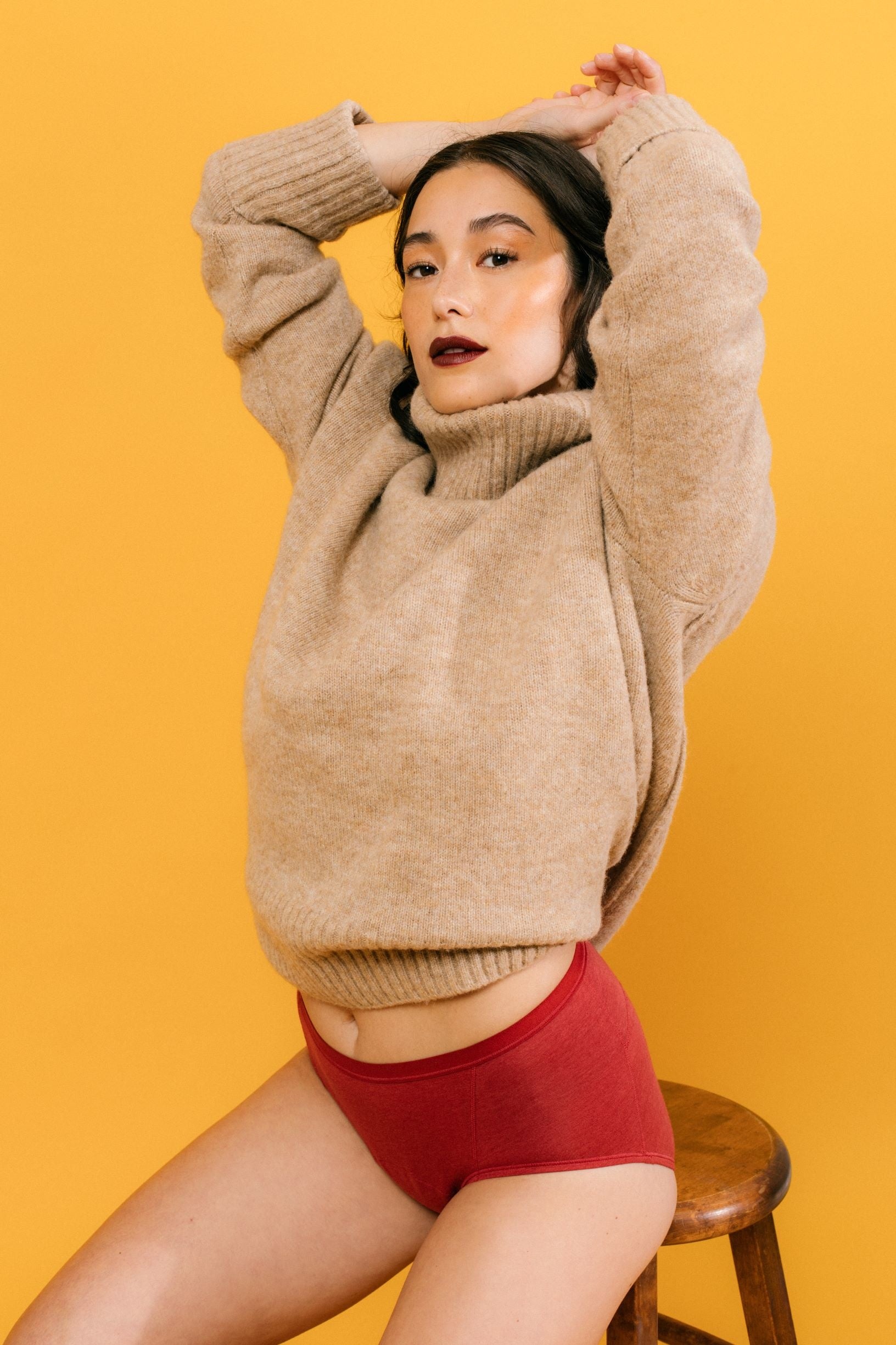 セミハイウエストのデザインで、身頃には肌触りの良い素材を使用した吸水ショーツ。