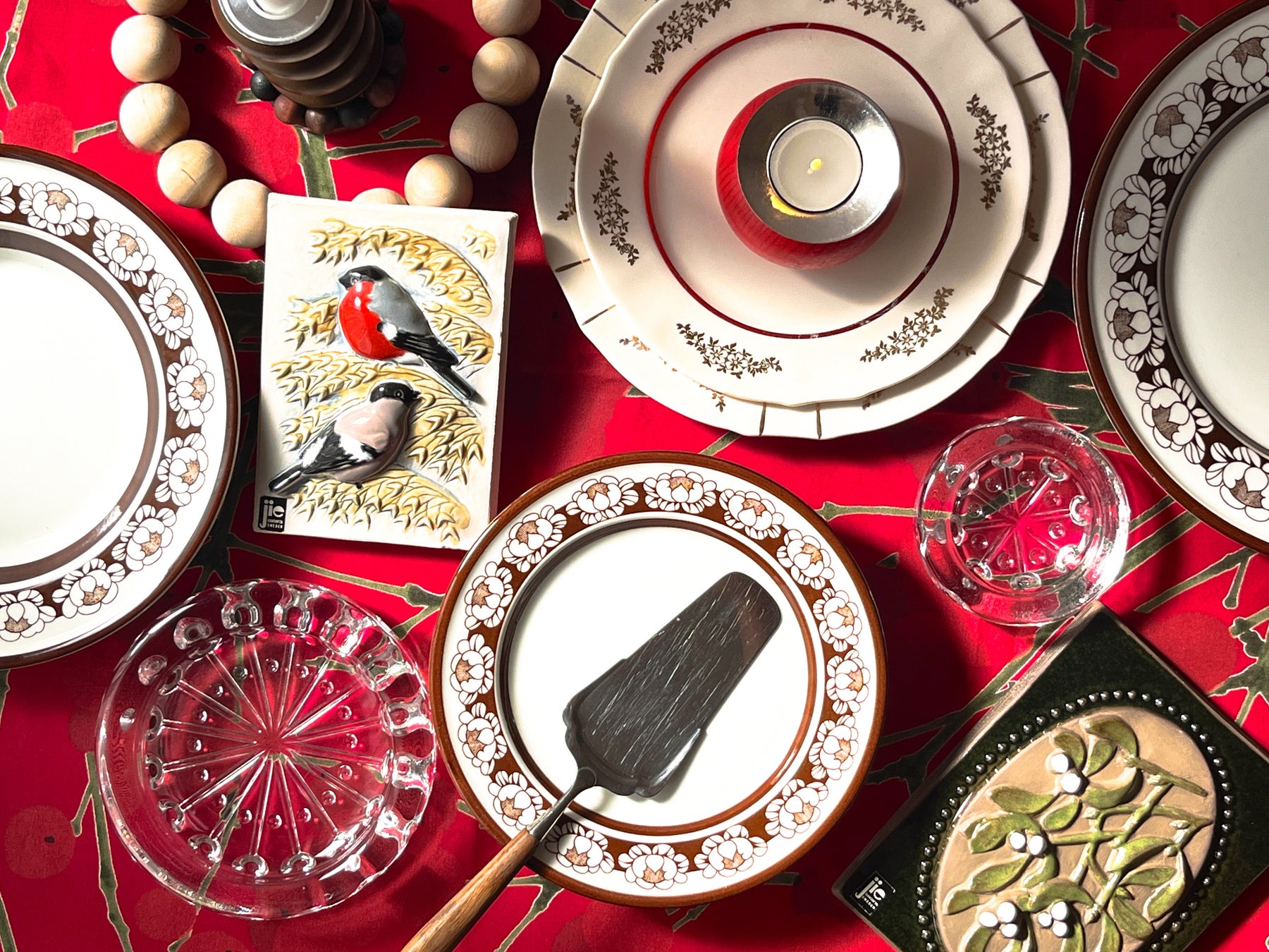 「ARABIA」屈指のデザイナー、エステリ・トムラが手がけた“katrilli”シリーズや、金彩を施した煌びやかな「OLD ARABIA」のプレートなど、クリスマスにぴったりな北欧ヴィンテージアイテムが並びます。