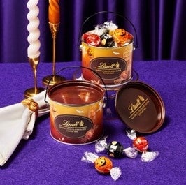 ハロウィンデザインのバケツ缶の中に、期間限定フレーバーや人気の「キャラメル」を含む12個のリンドール入り。持ち手付きで、ハロウィンのお楽しみ「トリック オア トリート」を心待ちにしているお子様へのプレゼントにもおすすめです。