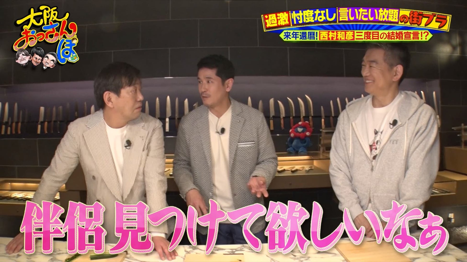 ひとしきり包丁の切れ味を楽しんだところで、3人は今後について語り合う。西村は今年で59歳、来年には還暦を迎えるという。俳優業に精を出すか、「それとも…プライベートでもう一回、伴侶を見つけるか」と、いきなり伴侶募集を匂わせて…!?