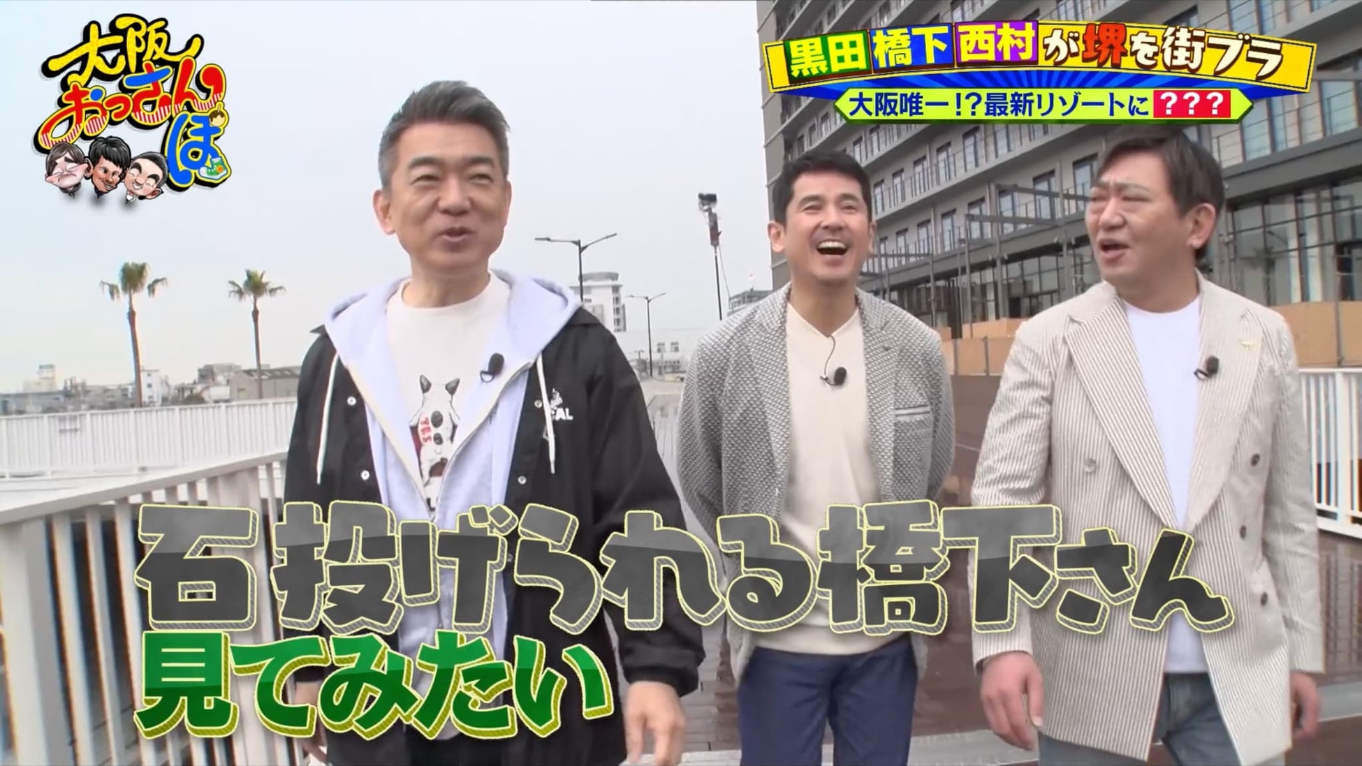 最近堺の街が生まれ変わっているということで、今回は最新スポットへ行ってみることに。まず出向いたのはアーバンリゾートタウン「ポルトマーレ」。キラキラとした新スポットに黒田は「こんなとこ、知らんわ~」、橋下も「刷新されすぎてもう…」と戸惑う。