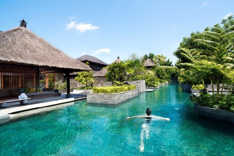 1 熱帯のジャングルを望み、水が巡るリゾート内で、涼しく過ごす
